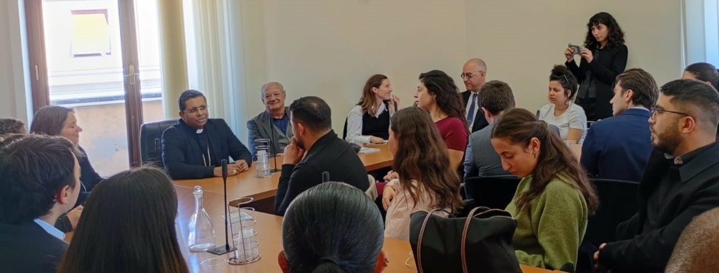 Mercoledì 5 novembre u.s., presso il Dicastero per il Dialogo Interreligioso, cinquanta tra studenti e studentesse israeliani, palestinesi e statunitensi, partecipanti al convegno Meaning Meets Us organizzato da Scholas Occurrentes, si sono incontrati con il Cardinal George Koovakad. È stato un prezioso momento di profonda e sincera condivisione reciproca di esperienze di vita, che li ha incoraggiati a continuare ad essere costruttori di ponti e a seminare dialogo e speranza nei loro rispettivi ambienti.